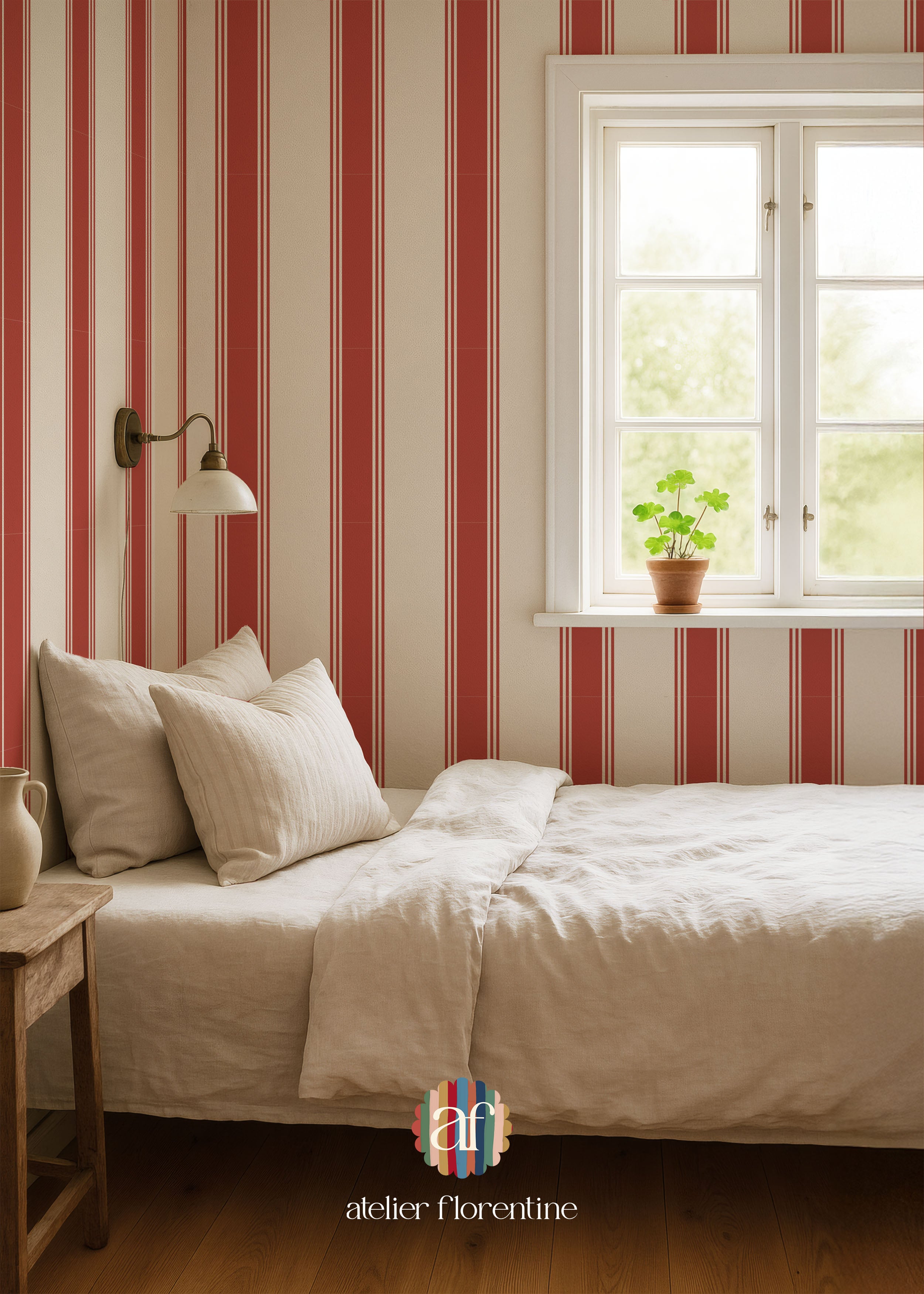 Nursery wallpaper, kids decor with red stripes, striped wallpaper for children