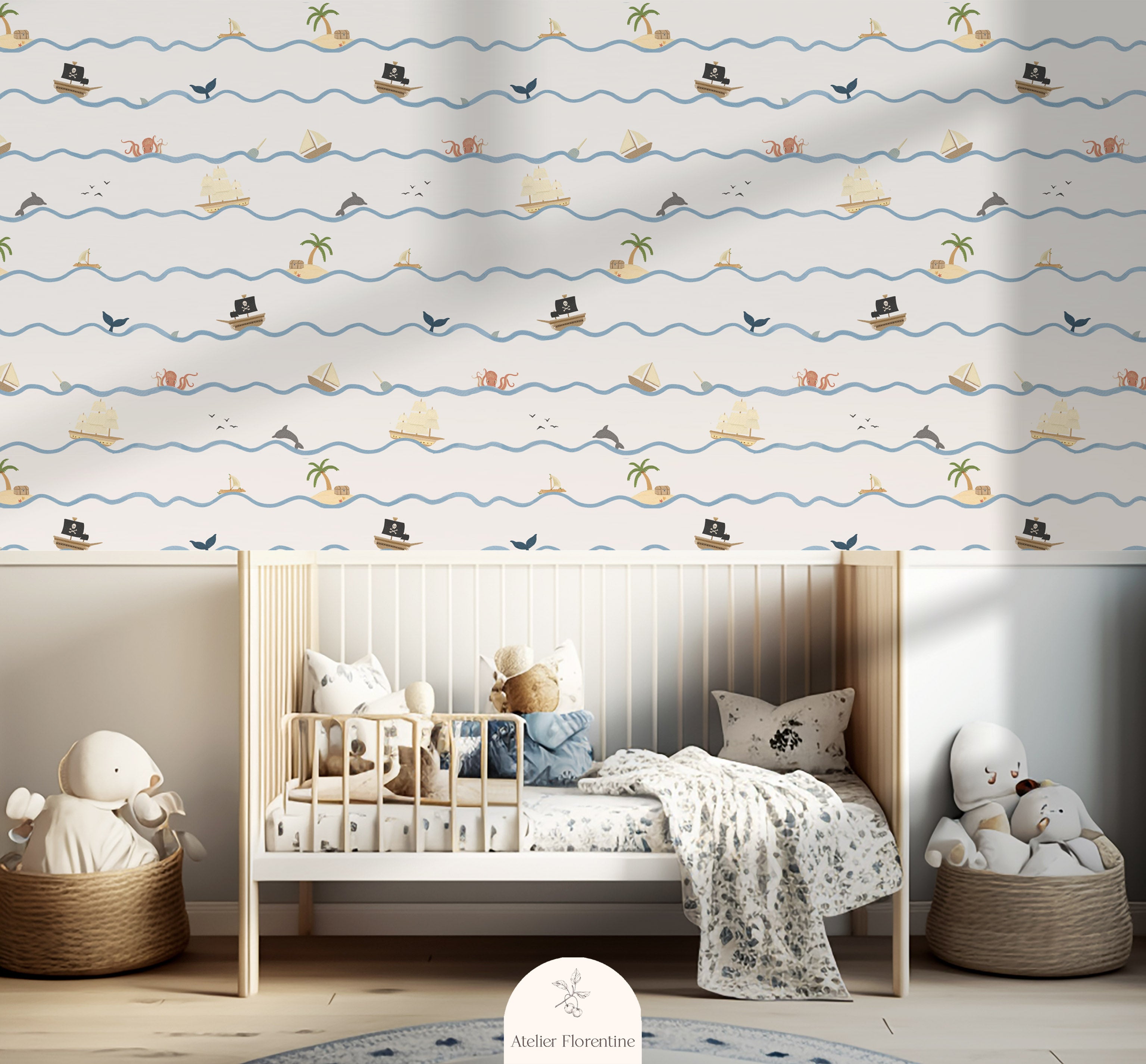 Wallpaper for the nursery. Discover our collection of children's wallpaper with enchanting designs hand painted or drawn in our Atelier in Amsterdam.