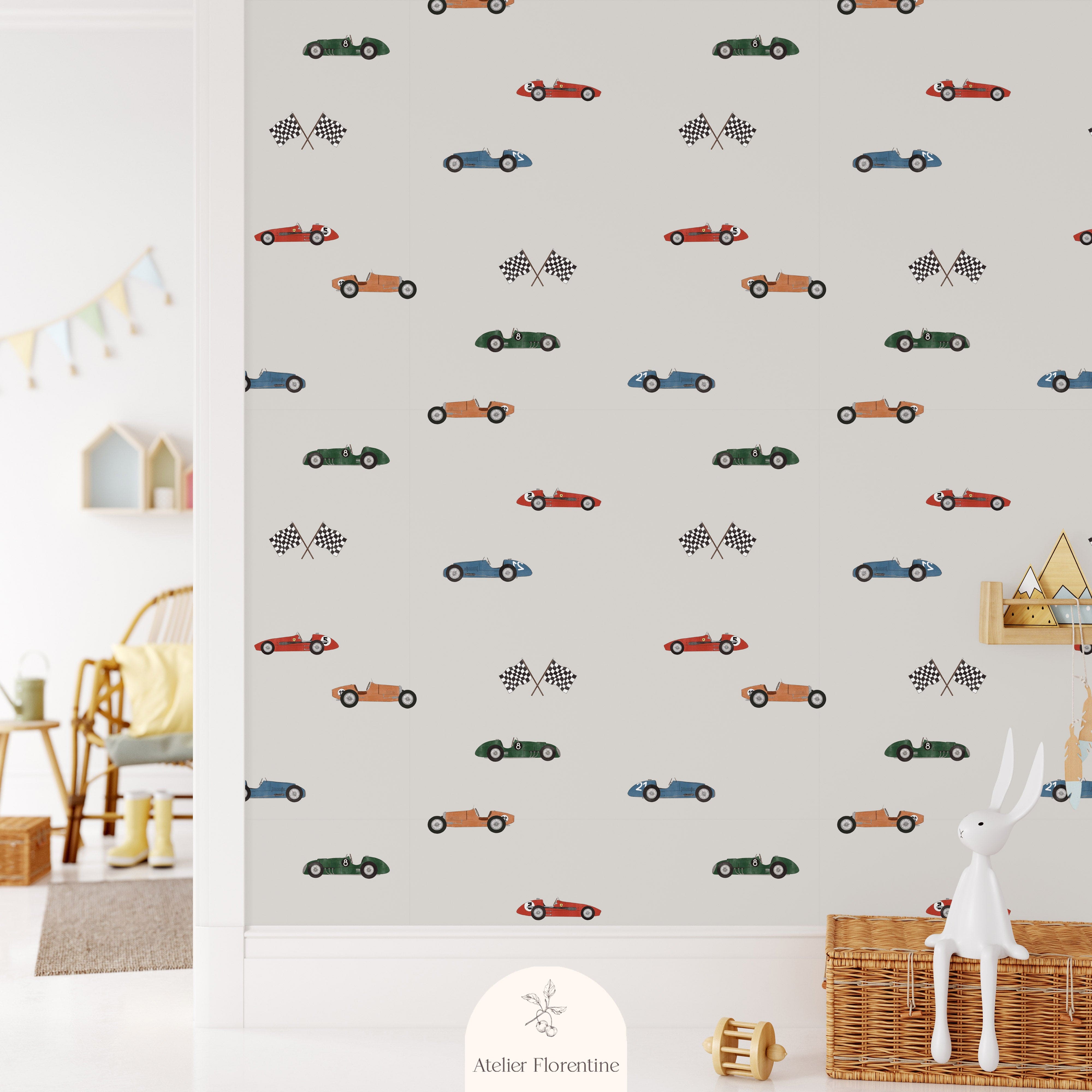 Children's wallpaper, vintage race cars, non-woven wallpapers, kids decor
