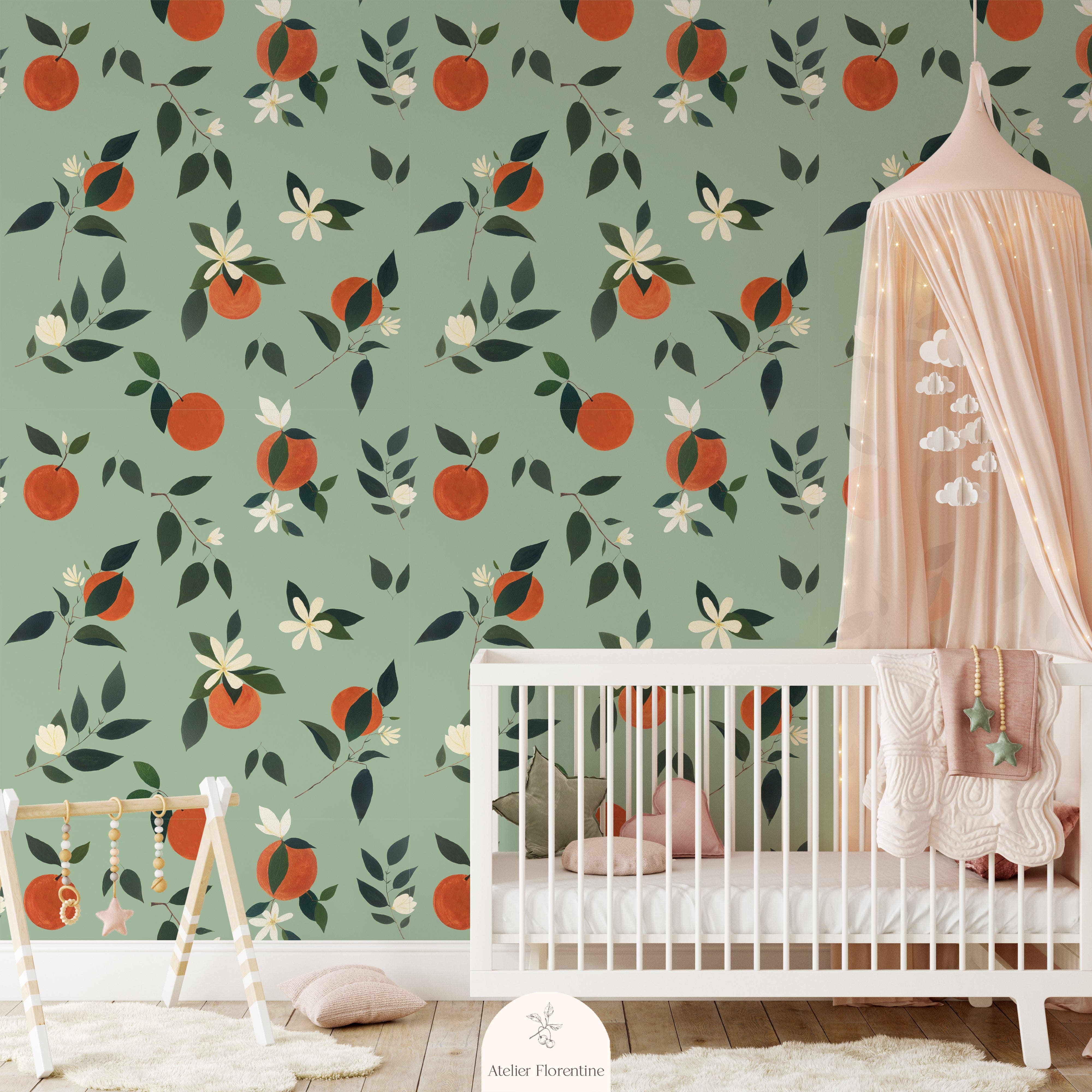 Wallpaper Oranges for kids and nurseries, nursery wallpaper for girls pink fruit